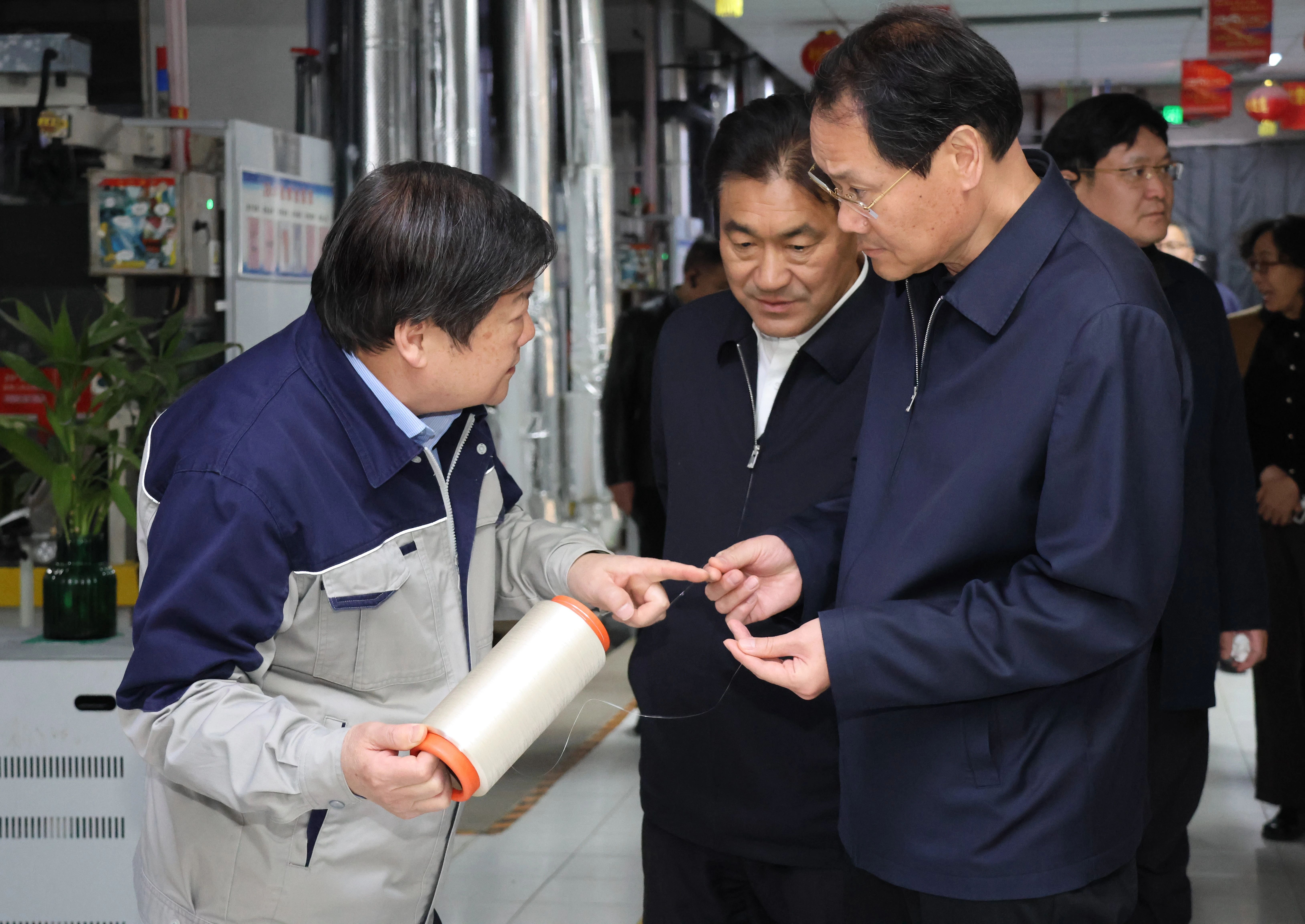 李民生对公司坚定不移走科技自立自强之路、全面推进绿色转型升级的实践给予了高度评价。他们表示:此次参观颠覆了对传统纺织业“千人纱万人布” 的固有印象,新乡化纤致力于建设现代化产业体系,深化两化融合,推动“制造”向“智造”跃升,将行业“技术难点”作为科技“突破点”,既率先培育科技成果,又将科技成果转化为实实在在的生产力,是中国经济韧性与潜力的生动写照。希望新乡化纤进一步筑牢新质生产力发展的基础性、战略性支撑,加快推进创新产业链条落地,打造更多新模式新产业新业态,以高质量发展助力书写中国式现代化新篇章。